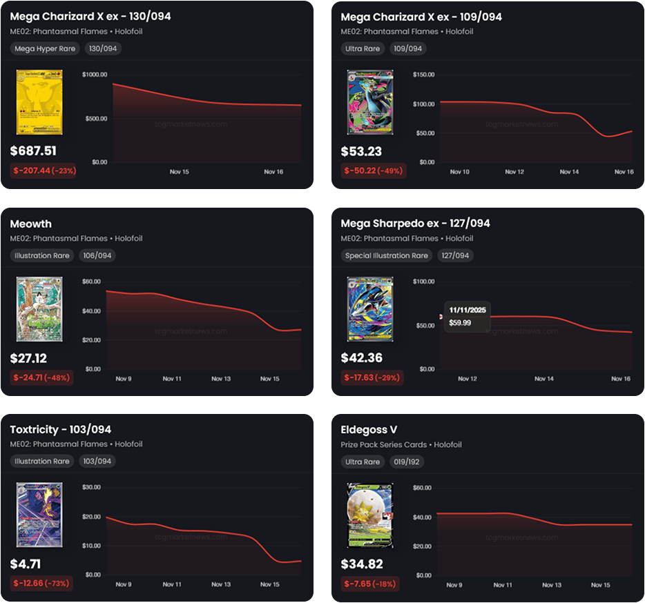 Sign Up November 3rd - November 9th, 2025 📋 TLDR 📰 TCG News: The Mega Dream ex set officially revealed featuring Mega Dragonite ex and the new “Mega Attack Rare” rarity, Beckett & Dragon Shield send a graded Pokémon card to space for charity, Walmart enforces new Pokémon card purchase limits ahead of Phantasmal Flames. 🔢 Card Market Highlights: Mega Dream ex case hits $3.5k amid pre-release hype, Generations ETB sells $2.15k, Evolutions booster boxes stabilize around $1.7k, Mario Pikachu PSA...