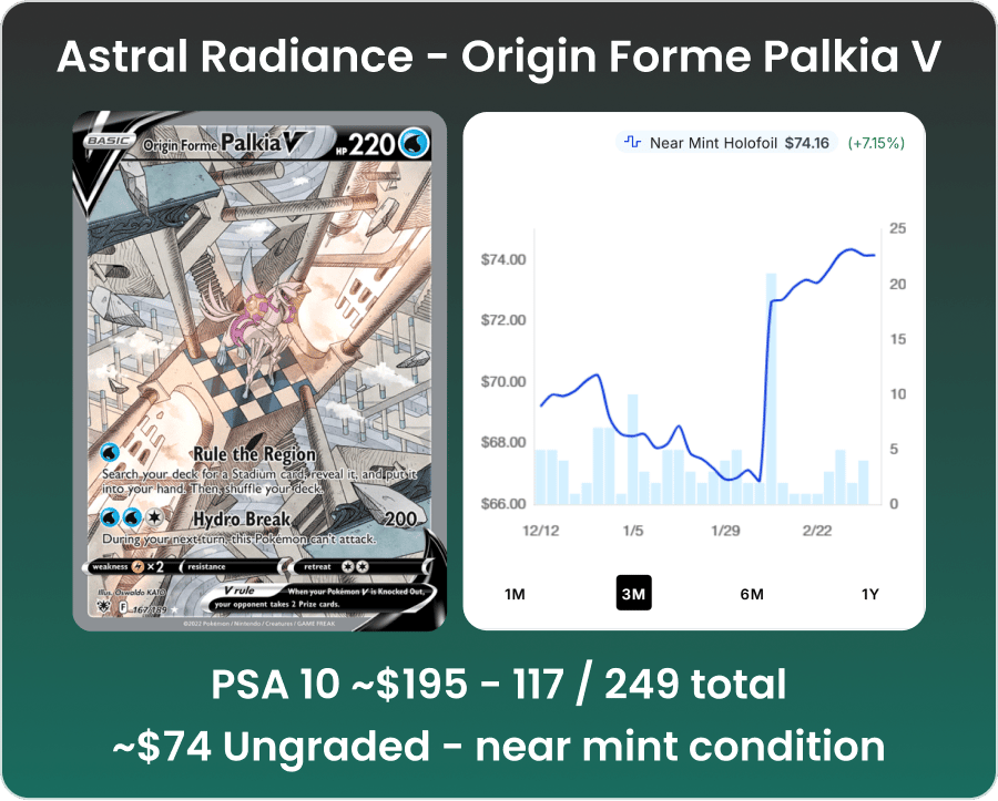March 2nd - March 8th, 2026 📰 TCG News Note: Some updates may touch on wider Pokémon news beyond the TCG. 🔵 Hong Kong based MemeStrategy Launches Tokenized Pokemon Fund, Targets 25% of PSA 10 Van Gogh Pikachu Supply Note: I’m not 100% sure about the claim that it is the first tokenized trading card fund as I have seen similar services appear in the past that are along the same lines but decided to summarize the article as is in case something about their process is indeed proprietary. Hong Kong-listed MemeStrategy (HKEX: 2440) announced the world’s first tokenized Pokemon trading card fund, giving professional investors institutional-level access to the collectible card market. The fund is built around the PSA 10 “Pikachu with Grey Felt Hat” card from the official Pokemon x Van Gogh Museum collaboration, aiming to acquire roughly 25% of the PSA 10 supply. Secondary market prices for the card have risen over 400% since late 2023, and total print supply is fixed following the early conclusion of the Van Gogh Museum collaboration, with the current PSA 10 population sitting at approximately 47,000. 🔵 PSA Damages PSA 10 Lenticular Deoxys During Reholdering A collector sent their PSA 10 Lenticular Deoxys for reholdering, only to have PSA damage the card during encapsulation, dropping it to a PSA 6. PSA offered approximately $19,250 in compensation, valuing the PSA 10 at $20,000 and the PSA 6 at $750. PSA’s valuation appears to be based on averaging recent comps, but the collector disputes it given the most recent sale reached $45,000 on February 22, 2026. The card is a 2004 Japanese Movie Commemoration VS Pack lenticular promo with only 38 PSA 10s out of 1,927 total graded. The lenticular surface makes achieving a 10 especially difficult. 🔵 Pokemon 151 Card Illustration Figure Collection Coming to Japan Starting March 13, Japan’s Pokemon Centers will sell the “Card Illustration Figure Collection,” a new product line turning Pokemon Card 151 artwork into 3D display figures. Each blind box includes a figure, matching 151 card, and a display frame for 1,800 yen (~$12). There are 13 possible figures, with the secret 13th being the Illustration Rare Machoke. The product originally launched in China last November and is now getting a Japanese release. Notably, the included cards appear to be direct reprints of the 151 set, which is currently out of print. No Western release has been announced. 📈 Card Trends Source: Price data provided by TCGPlayer.com and chart visual provided by TCGMarketNews.com (which sources data from TCGPlayer). Weekly Top Gains 🔼 Weekly Top Losses 🔽 📦 Sealed Product Sales Highlights 🔵 Dark Explorers Booster Box Sells for ~$20.1k Listing Dark Explorers is known for chase cards like Darkrai EX, Tornadus EX, and Raikou EX full arts, along with Shiny Secret rares. Sealed Type - Year: Booster Box - 2012 🔵 EX Blister Sells for $5k Listing These blisters were sold at big-box retailers and came in different promo configurations, with a Mew variant also known to exist. EX Power Keepers (2007) was the final set in the EX era. Sealed Type - Year: 3-Pack Retail Blister - 2007 ⭐ Individual Cards & Graded Sales Highlights 🔵 PSA 10 Call of Legends Palkia Sells for ~$35k Listing For Palkia #SL8, There are 18 PSA 10 copies out of 599 graded total. Singles Type - Condition: Graded - PSA 10 🔵 Black Label Ascended Heroes Pikachu Sells for ~$16.1k Listing Ascended Heroes is the latest Mega Evolution expansion, and this Pikachu is one of the set’s most sought-after chase cards. Singles Type - Condition: Graded - BGS 10 Black Label 🔵 Complete Japanese Poncho Wearing Eevee Promo Set Sells for $10.25k Listing This is the complete 8-card Japanese SM-P promo set featuring Eevee wearing ponchos of each Eeveelution. The cards were distributed through the 2017 Eevee Mega Campaign at Pokemon Centers in Japan. Singles Type - Condition: Sealed Cellophane - NM 🕰️ Vintage & Niche Collectibles Sales Highlights 🔵 Natta Wake Volume 6 Sells for $6k (Includes Birthday Pikachu Promo) Listing Natta Wake (“How I Became a Pokemon Card”) is a Japanese manga series by illustrator Kagemaru Himeno. Each volume included an exclusive promo card illustrated by Himeno. Volume 6 contains the Birthday Pikachu #25 promo. Origin Source - Year: Natta Wake Manga Vol. 6 (Japanese Promo) - 2001 🔵 Japanese CoroCoro Unpeeled Sheet Mewtwo Promo Sells for $5k Listing CoroCoro Comic, a Japanese manga magazine, distributed glossy promo cards as magazine inserts in the late 1990s. "Unpeeled" means the card sheet was never separated from the original magazine backing, making it even more rare than the loose card version. Origin Source - Year: CoroCoro Comic Magazine Insert (Japanese Glossy Promo #150) - 1997 🔍 Under the Radar Prices for both graded and raw copies have pulled back roughly 5-10%, opening a better entry point for both. Palkia is already a popular legendary, but what sets this card apart is its MC Escher-inspired artwork, which plays perfectly into Palkia's spatial distortion theme and elevates it from a standard alt art. Questions or feedback? Send a message to news@luckyeggreport.com 🥚. Note: Sold listing links sometimes redirect to active listings after some time, but should still be discoverable by searching for the listings manually. Chart Source: TCGPlayer, TCGMarketNews Unsubscribe | Update your profile | 600 1st Ave, Ste 330 PMB 92768, Seattle, WA 98104-2246 |